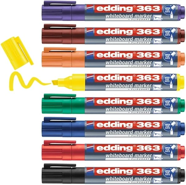 - The edding 363 whiteboard marker pen comes in 8 different colours; the edding 360 and edding 361 whiteboard markers offer additional line widths