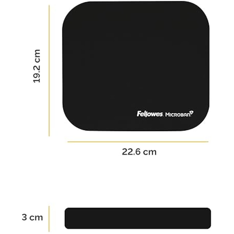 Fellowes Mouse Mat with Non-Slip Rubber Base – Mouse Pad with Antibacterial Protection – Suitable for Both Optical and Laser Mice – 199 x 232 x 2mm – Black