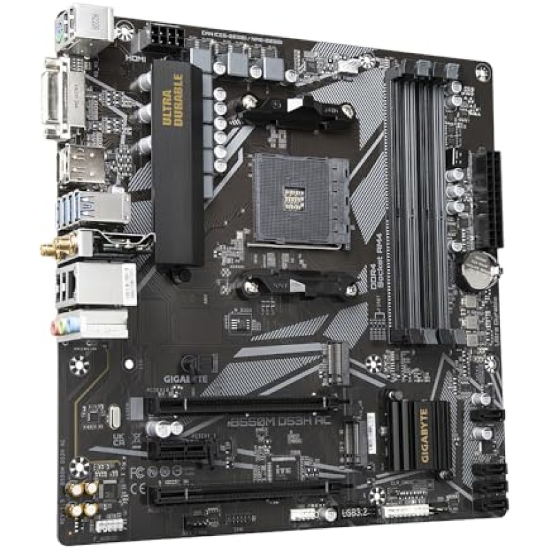 Gigabyte B550M DS3H AC Motherboard - Supports AMD Ryzen 5000 Series AM4 CPUs, 5+3 Phases Pure Digital VRM, up to 4733MHz DDR4 (OC), 2xPCIe 3.0 M.2, GbE LAN, USB 3.2 Gen1