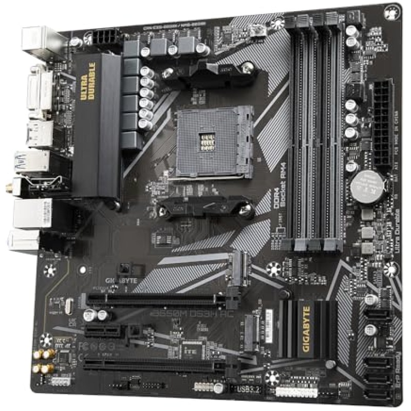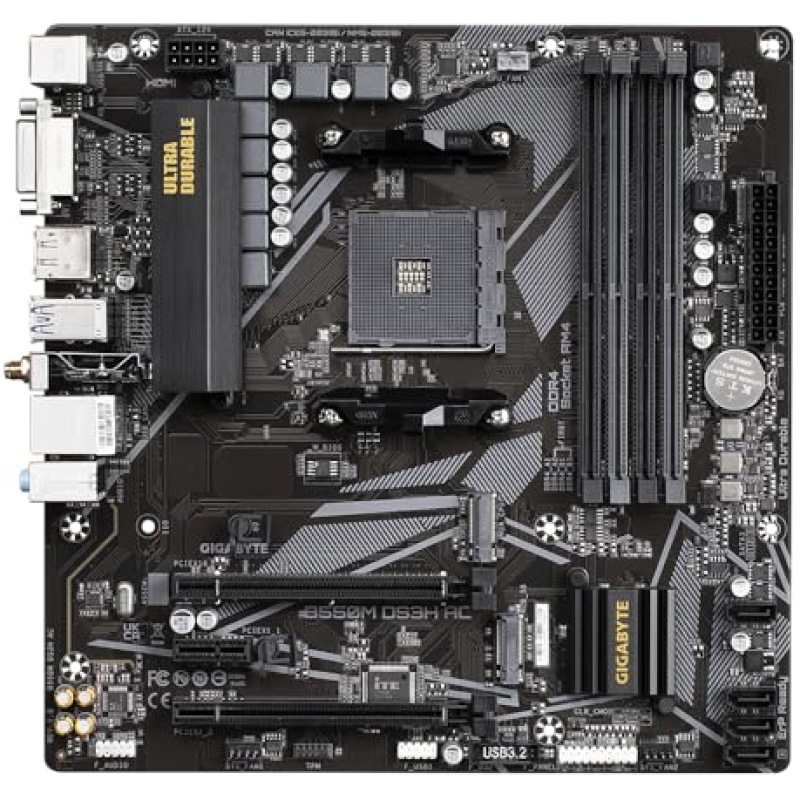 Gigabyte B550M DS3H AC Motherboard – Supports AMD Ryzen 5000 Series AM4 CPUs, 5+3 Phases Pure Digital VRM, up to 4733MHz DDR4 (OC), 2xPCIe 3.0 M.2, GbE LAN, USB 3.2 Gen1