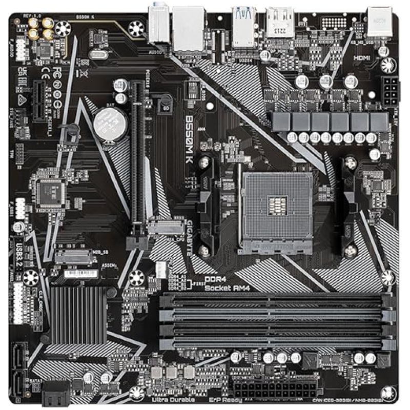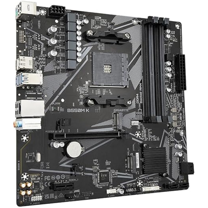 Gigabyte B550M K Motherboard – Supports AMD Ryzen 5000 Series AM4 CPUs, up to 4733MHz DDR4 (OC), 2xPCIe 3.0 M.2, GbE LAN, USB 3.2 Gen1
