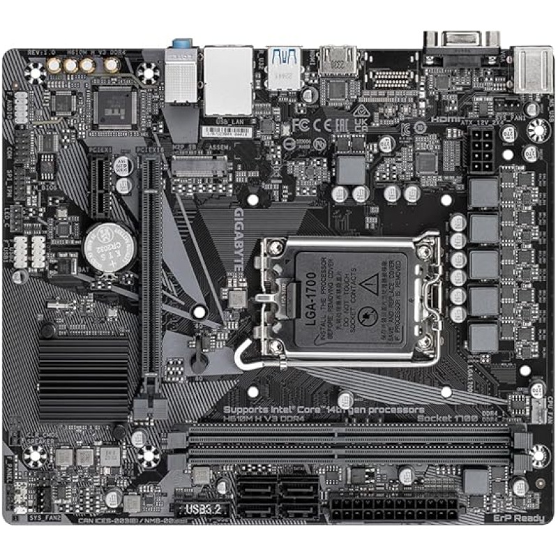 Gigabyte H610M H V3 DDR4 Motherboard – Supports Intel Core 14th CPUs, 4+1+1 Hybrid Phases Digital VRM, up to 3200MHz DDR4, 1xPCIe 3.0 M.2, GbE LAN, USB 3.2 Gen 1