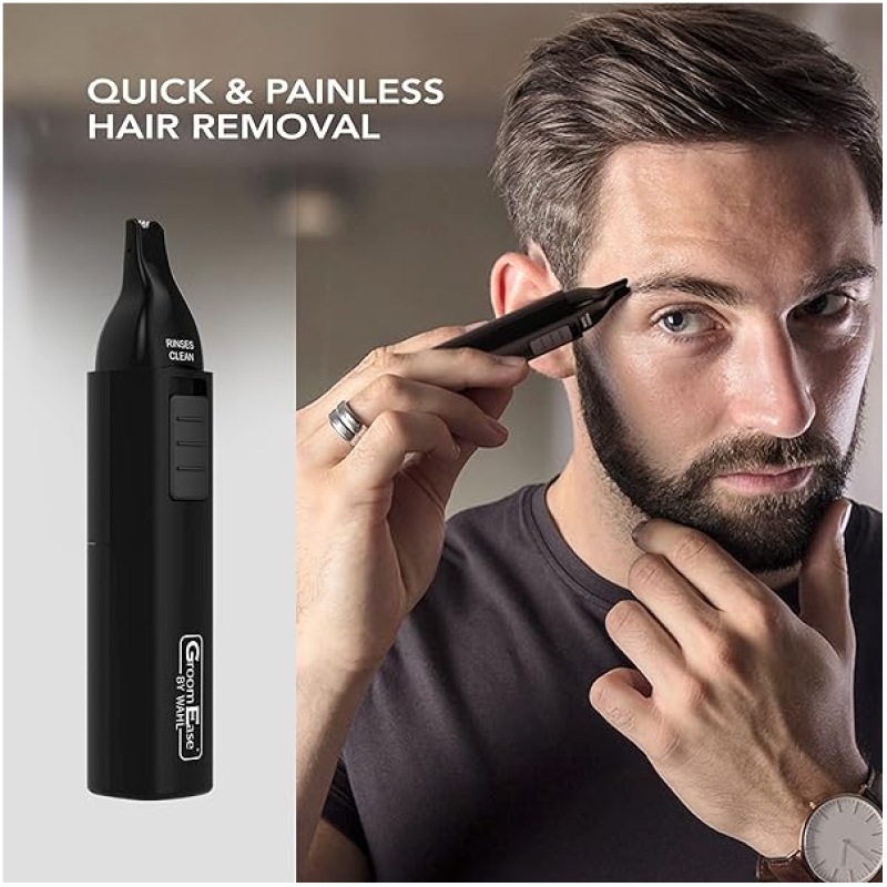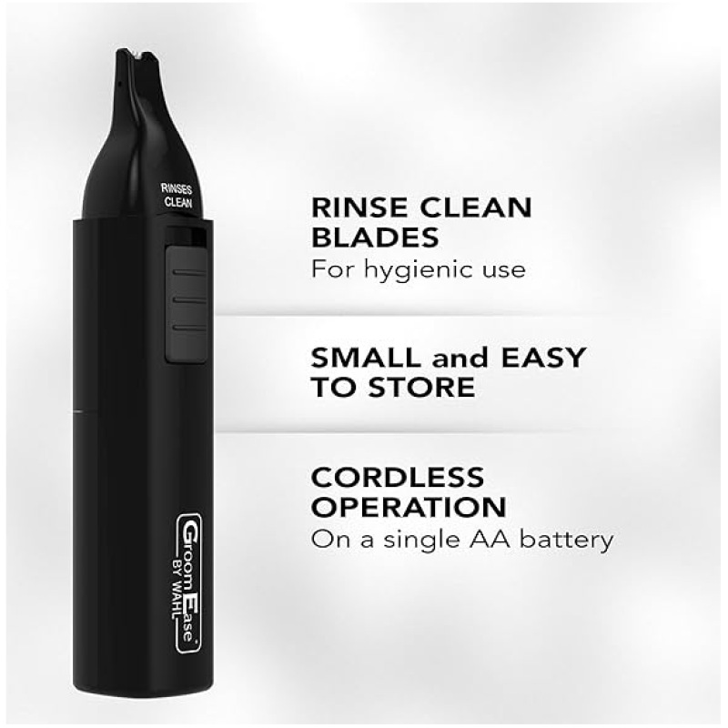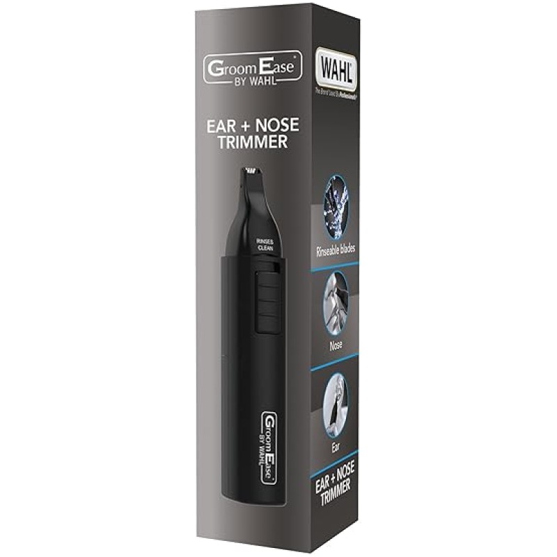 GroomEase by Wahl Ear and Nose Trimmer, Personal Trimmer, Trimmers for Men and Women, Nose Ear and Eyebrow Trimming, Rinse Clean Blade, Easy to Use, Cordless