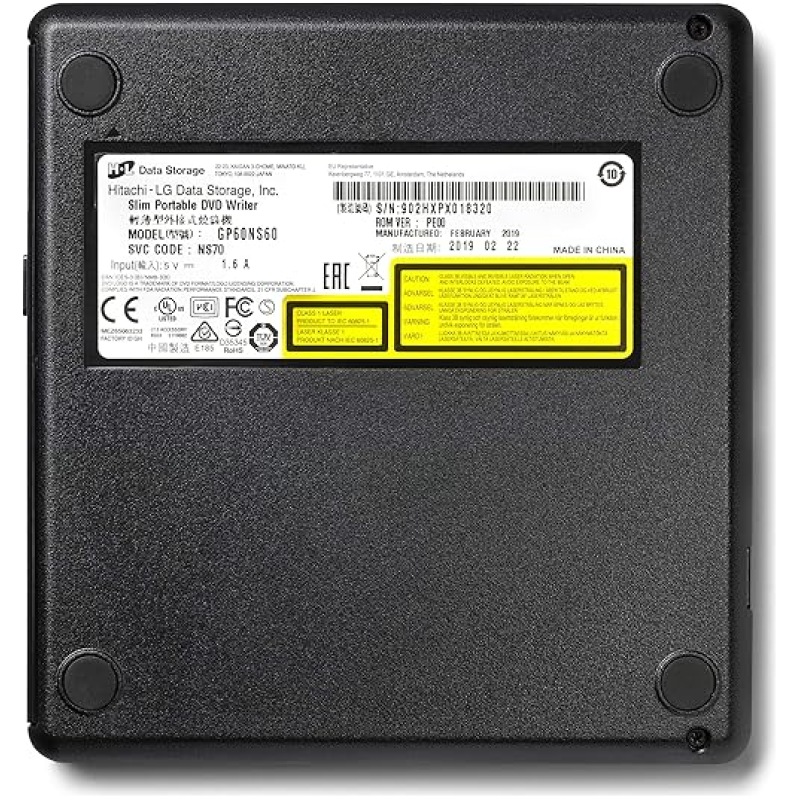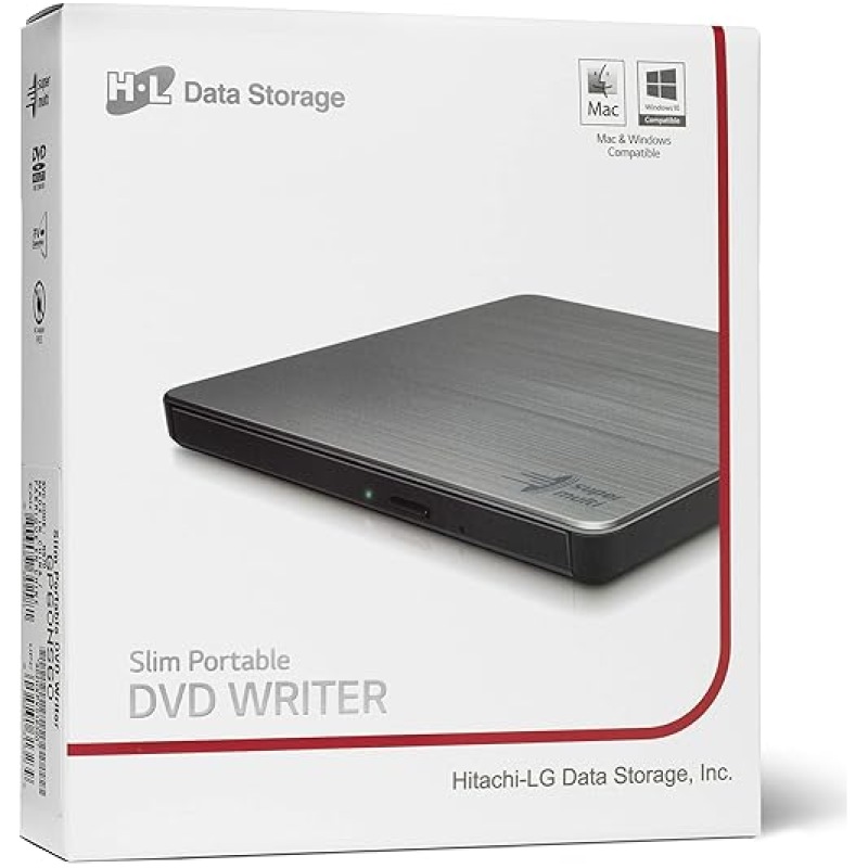 Hitachi-LG GP60 External DVD Drive, Slim Portable DVD Burner/Writer/Player for Laptop, Windows and Mac OS Compatible, USB 2.0, 8x Read/Write Speed – Silver