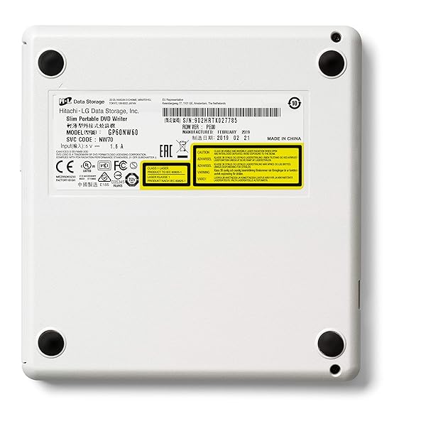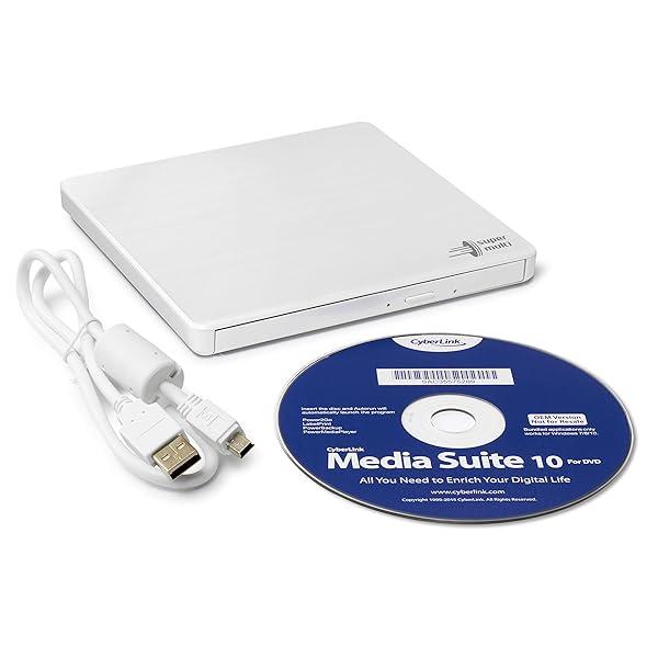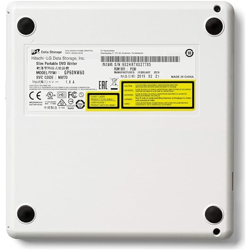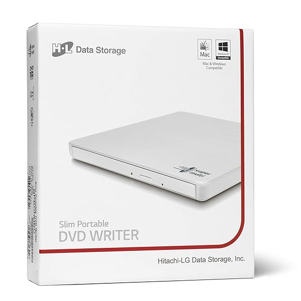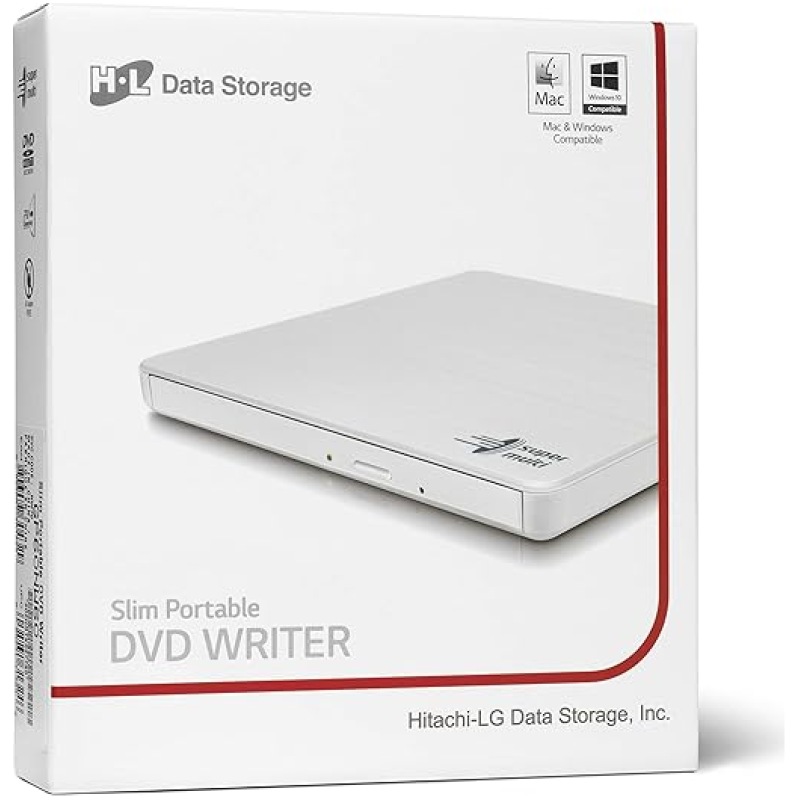 Hitachi-LG GP60 External DVD Drive, Slim Portable DVD Burner/Writer/Player for Laptop, Windows and Mac OS Compatible, USB 2.0, 8x Read/Write Speed - White