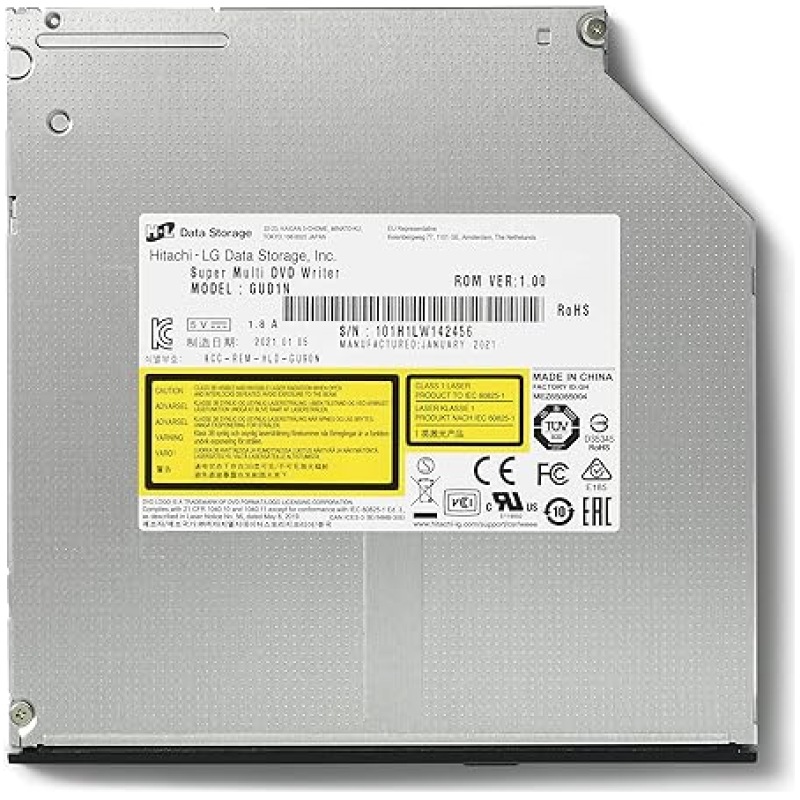 Hitachi-LG GUD1N Internal DVD Drive, Slim 9.5 mm DVD Player/Writer for Laptop/Desktop PC, Windows 10 Compatible, 8x Read/Write Speed – Black