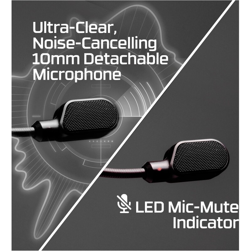 - UPGRADED MICROPHONE: Captures high-quality audio for clear voice chat and calls. The mic is noise- cancelling and features a built-in mesh filter to reduce disruptive sounds. It also features an LED mic mute indicator that lets you know when you’re muted.