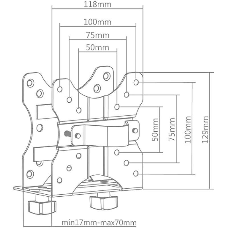 • Mini PC is fixed between the steel plates, the width can be adjusted (1.7 cm to 7 cm)