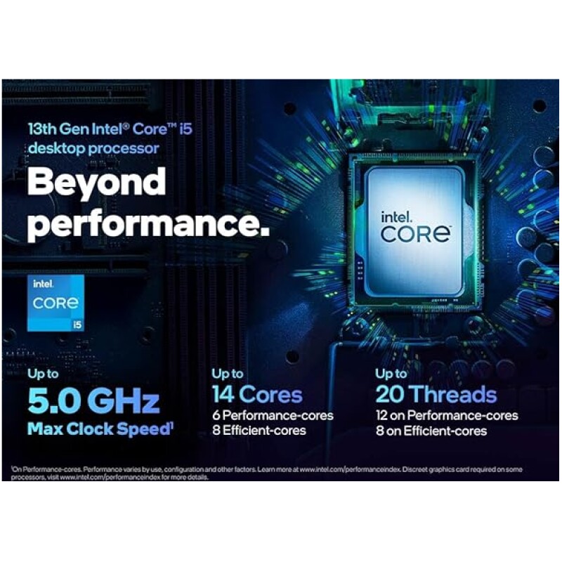- 13th Gen Intel Core i5 desktop processors are optimized for gamers and productivity and help deliver high performance.