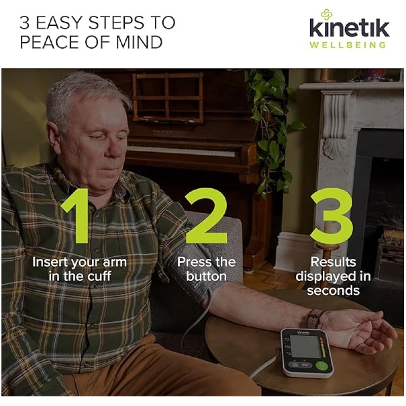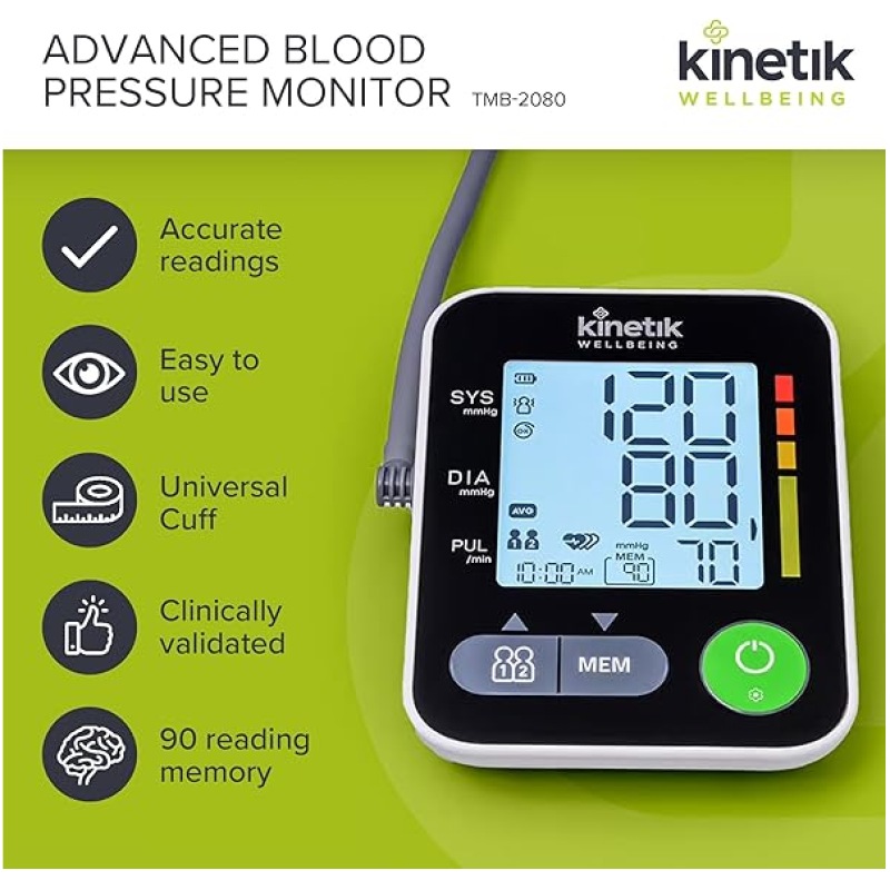 Kinetik Wellbeing Advanced Blood Pressure Monitor – Used by the NHS – Fully Automatic Upper Arm Blood Pressure Machine with Universal Cuff (22-42cm), Digital Sphygmomanometer Tester Kit