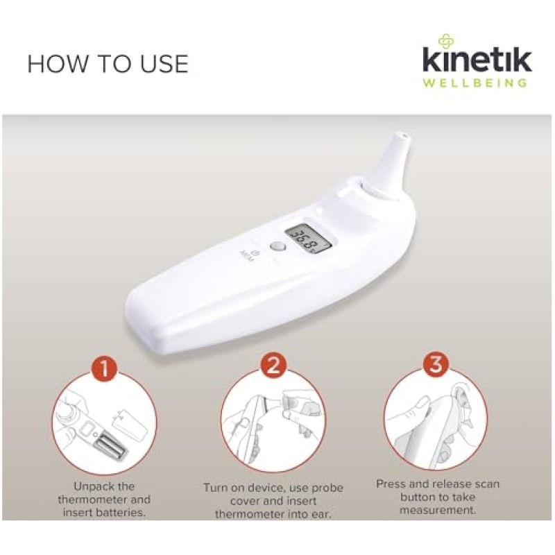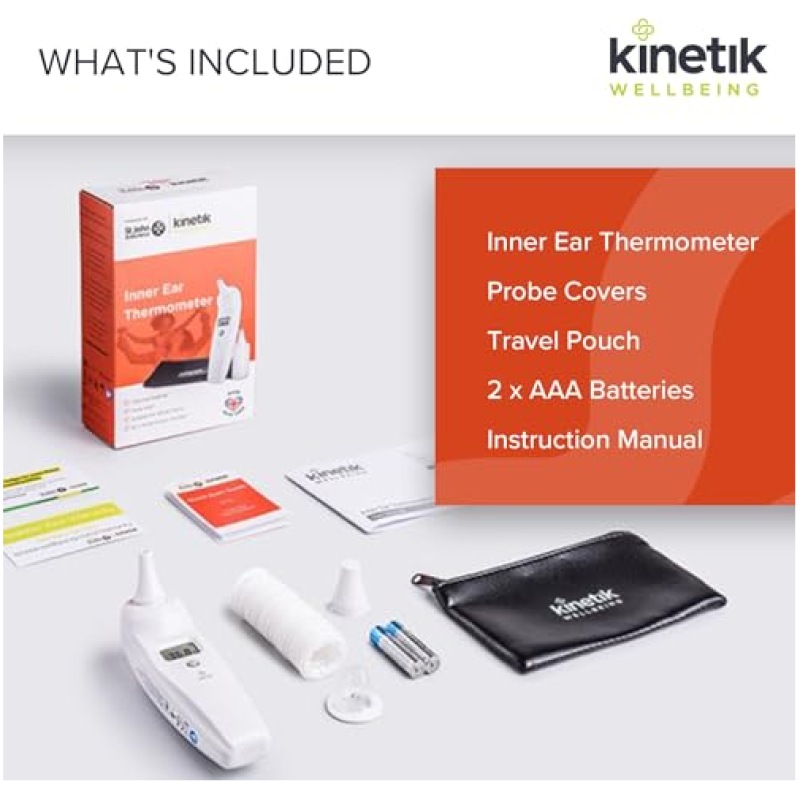 Kinetik Wellbeing Inner Ear Thermometer ? Medical Thermometer for Adults & Kids – Electronic Body Temperature & Fever Monitor, Travel Pouch Included