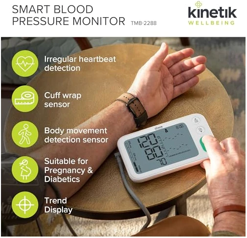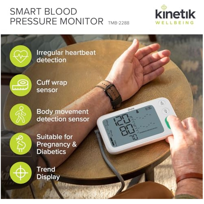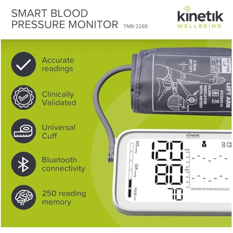 Kinetik Wellbeing Smart Blood Pressure Machine – Bluetooth Arm Blood Pressure Monitors Large Cuff Universal (22-45cm)