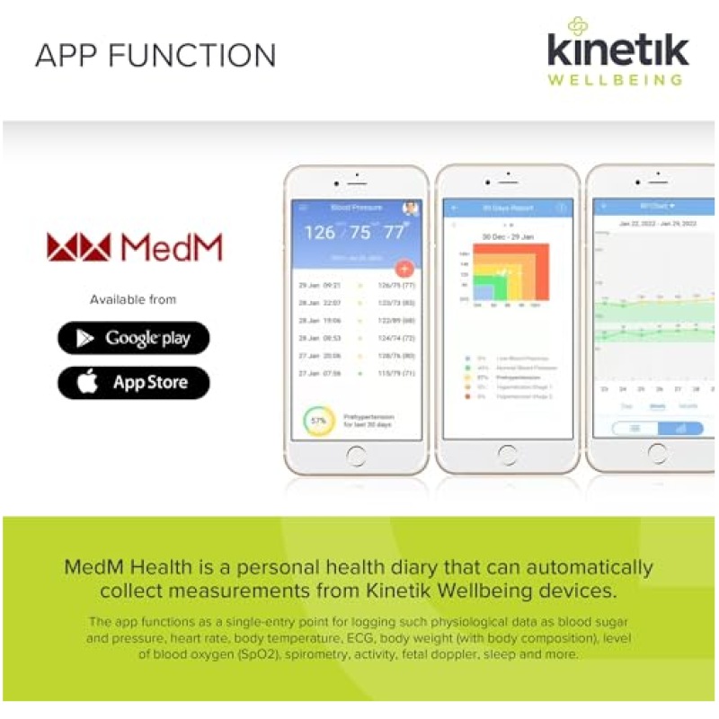 - Menopause Friendly: In partnership with GenM; Kinetik Wellbeing acknowledges the crucial connection between oestrogen loss and rising blood pressure in menopause & perimenopause; empowering women to detect early changes with our home blood pressure monitor