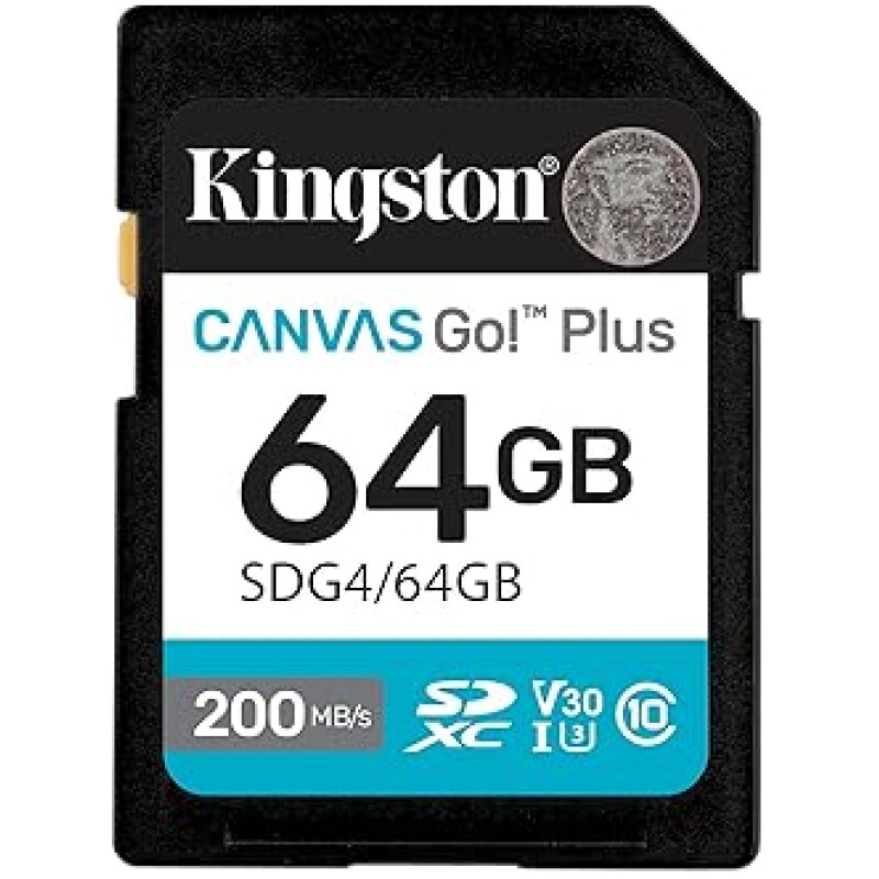 Kingston Canvas Go Plus SDXC Memory Card Gen4 200MB/s C10 UHS-I U3 V30 64GB-SDG4/64GB