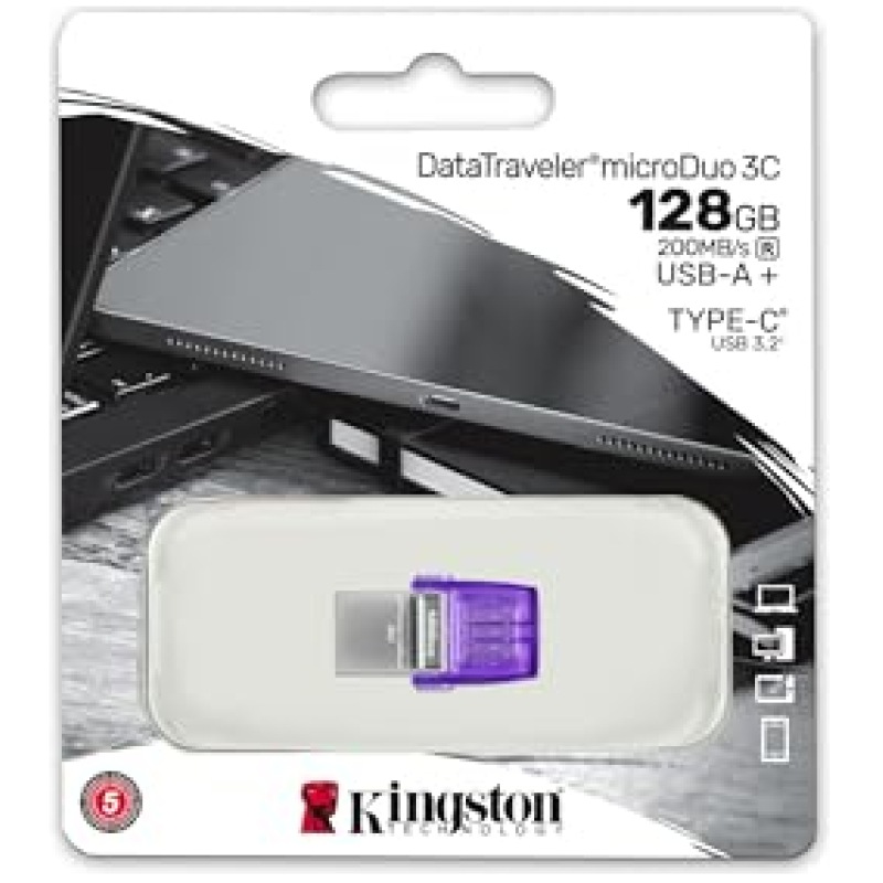 Kingston DataTraveler microDuo 3C USB Flash Drive 128GB USB Gen 3 Type-C and Type-A – DTDUO3CG3/128GB