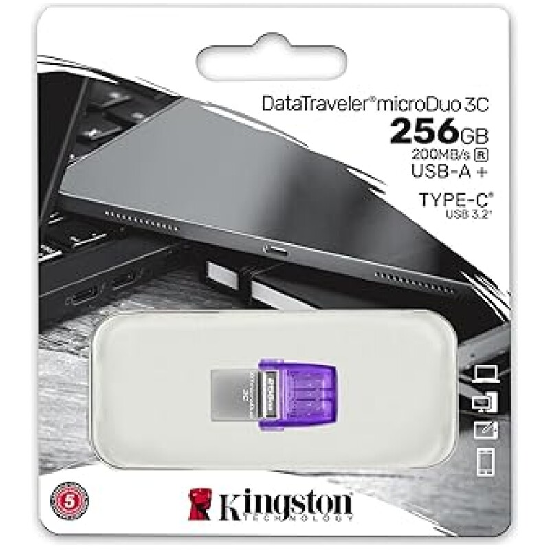 Kingston DataTraveler microDuo 3C USB Flash Drive 256GB USB Gen 3 Type-C and Type-A – DTDUO3CG3/256GB