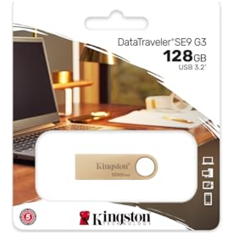 Kingston DataTraveler SE9 Gen 3 – 128GB – 220MB/s read – Metal – USB 3.2 Gen 1 – Gold
