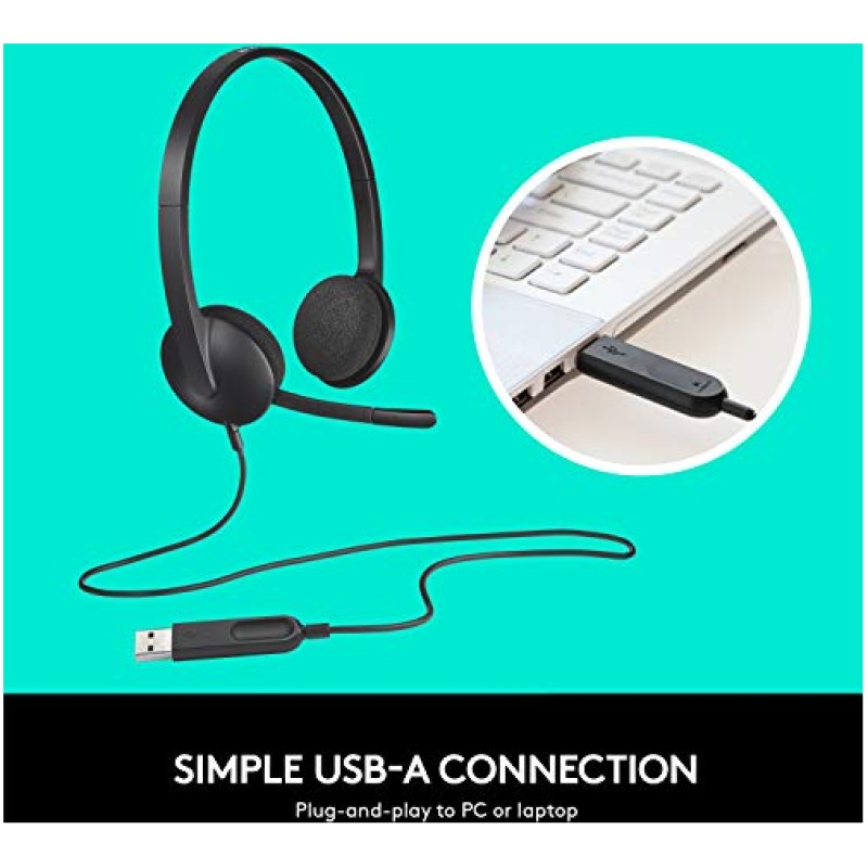 Logitech H340 Wired Headset, Stereo Headphones with Noise-Cancelling Microphone, USB, PC/Mac/Laptop – Black