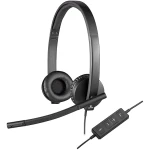 Logitech H570e Wired Headset, Stereo Headphones with Noise-Cancelling Microphone, USB, In-Line Controls with Mute Button, Indicator LED, PC/Mac/Laptop - Black