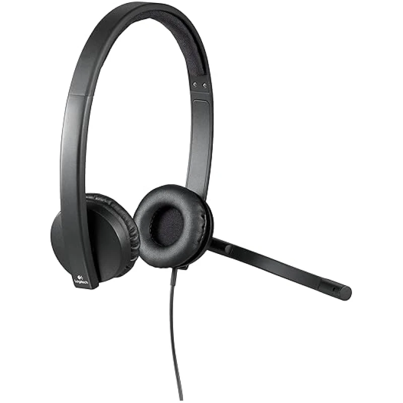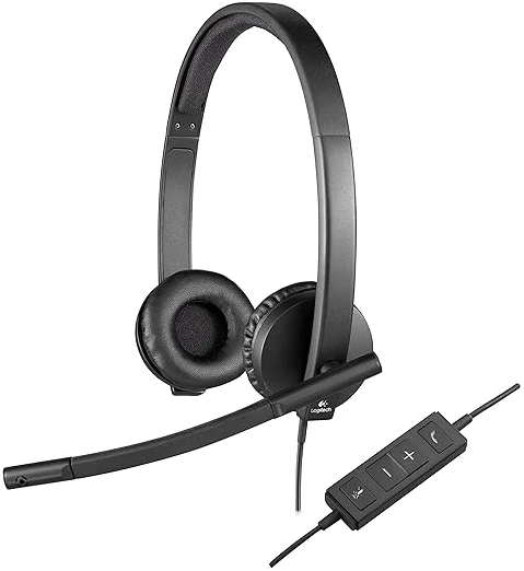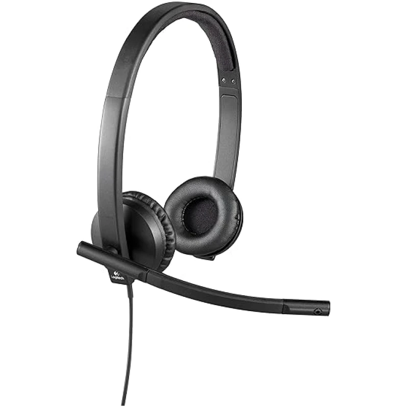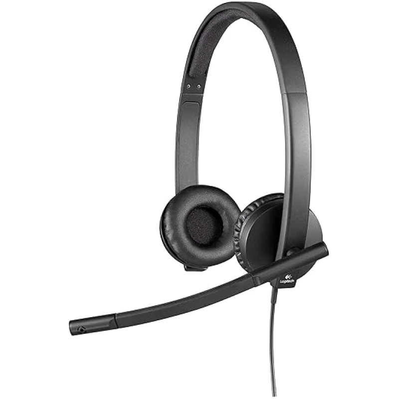 Logitech H570e Wired Headset, Stereo Headphones with Noise-Cancelling Microphone, USB, In-Line Controls with Mute Button, Indicator LED, PC/Mac/Laptop – Black