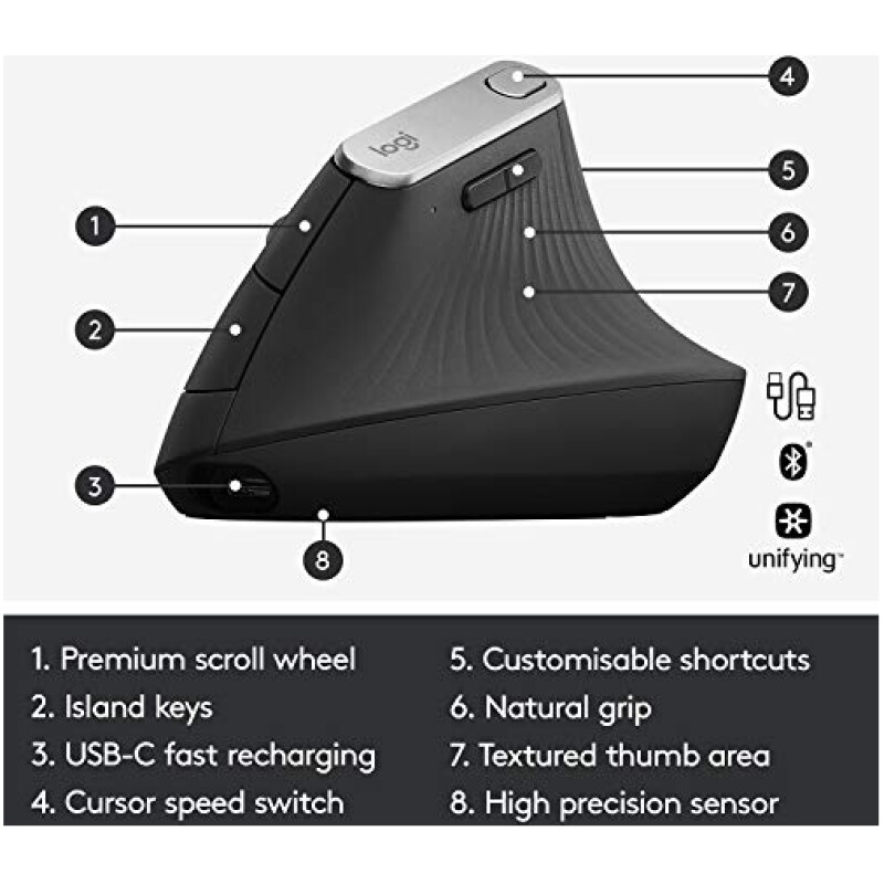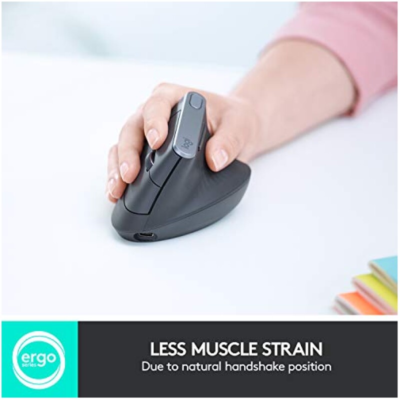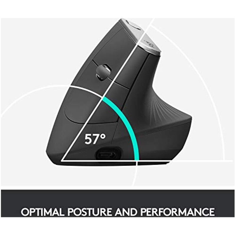 - Natural handshake position : The Logitech MX Vertical’s natural handshake position helps reduce muscular activity by 10 percent compared to a standard computer mouse – without any loss in overall performance
