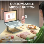 • Save Time: Personalise the middle button with Logi Options+ app (2) to do more with Pebble Mouse 2; add shortcuts for your favourite apps, including WhatsApp and Spotify