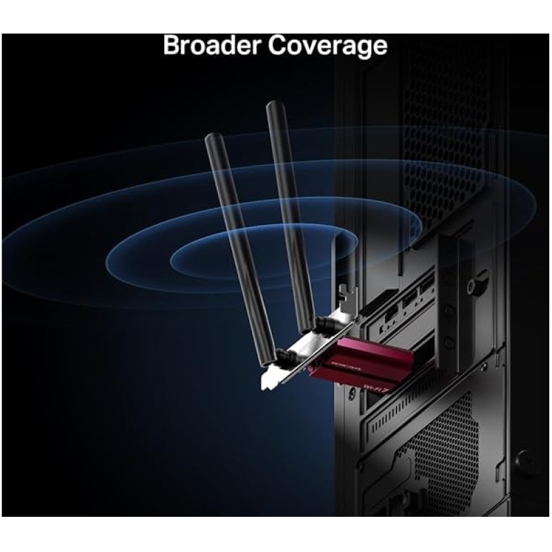 - Wi-Fi 7 Standard Upgrade ? Boost your desktop?s wireless performance by upgrading to the latest network card standard with Wi-Fi 7, offering greater throughput, reduced latency, and improved reliability across all bands