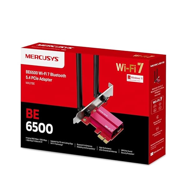 Mercusys MA37BE PCIe WIFI Card, BE6500 WiFi 7 Bluetooth 5.4, Tri-Band,2 Two High-performance Antennas, Security Protection, Work with Windows 11, MU-MIMO,More Devices, Lower Latency,Less Congestion