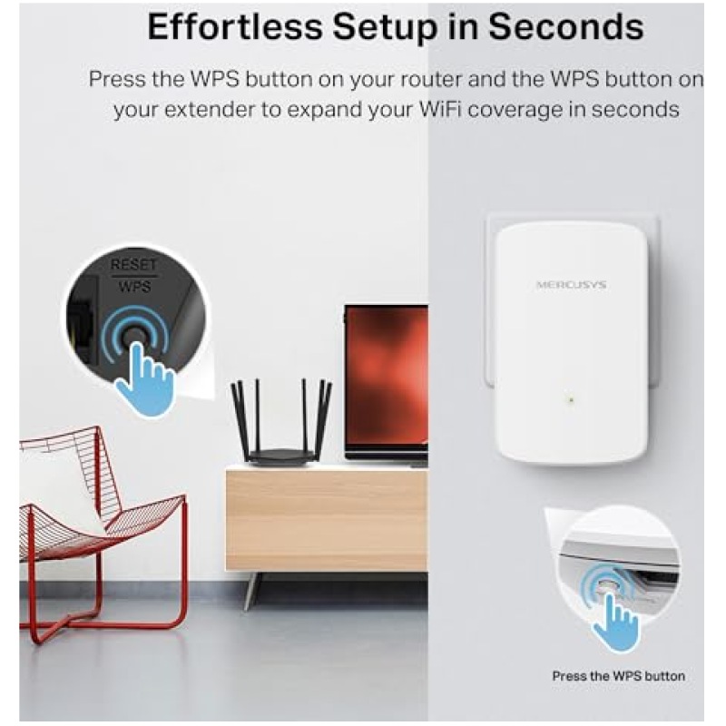 - Easy One-Touch Setup – Simply press the WPS button to expand your WiFi coverage in seconds; Step 1- Press the WPS button on your router and your ME10; Step 2- Relocate the ME10 to the best place, using its smart signal indicator