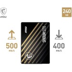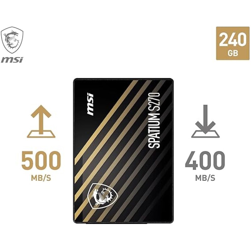 MSI SPATIUM S270 SSD 240GB – SATA 3 2.5" Solid State Drive, 500MB/s Read & 400MB/s Write, 3D NAND, Built-In Data Security, Center – 5 Year Warranty (110 TBW)