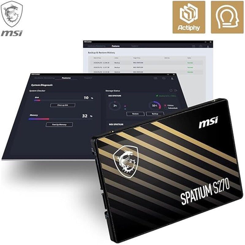 - DATA CARE – MSI Center software allows users to easily migrate data and monitor drive health/performance; Actiphy software support (included) can prevent key data loss with backup & restore functionality features