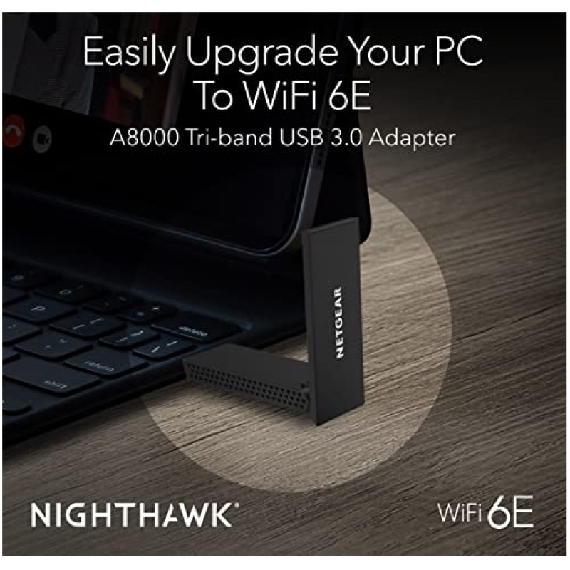 NETGEAR Nighthawk WiFi 6E USB 3.0 WiFi Adapter (A8000) - WiFi 6 Dongle For PC - AXE3000 Tri-band Wireless Gigabit Speed (Up to 3 Gbps) - New 6 GHz Band - For Windows PC