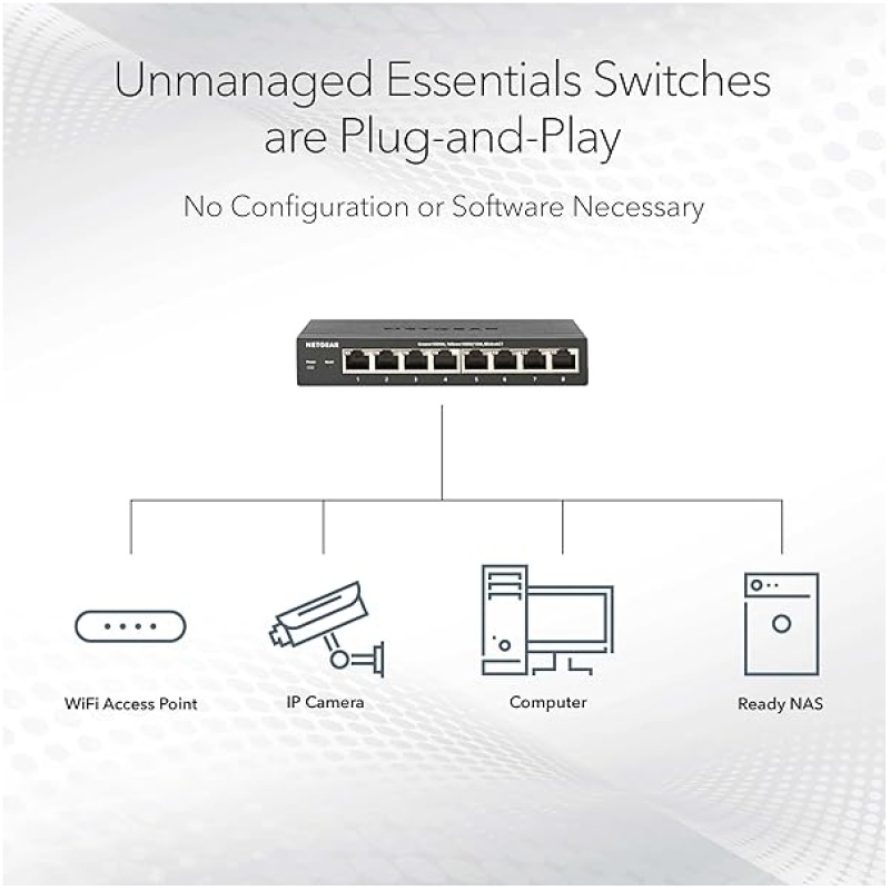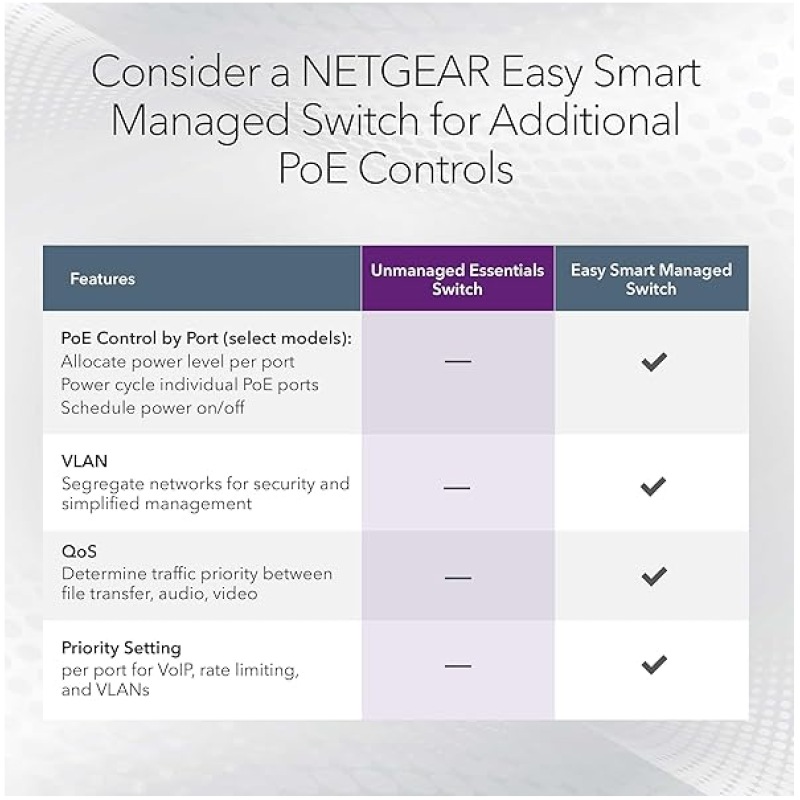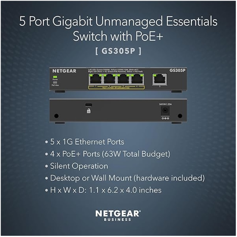 NETGEAR PoE Switch 5 Port Gigabit Ethernet Plus Network Switch, GS305P, with 4 x PoE+, 63W, Desktop or Wall Mount