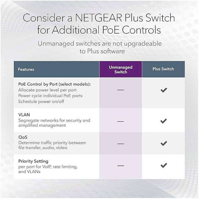 - 02.3af Power Over Ethernet (PoE) for IP cameras, VoIP/Internet-based phones, wireless access points (GS308P only)