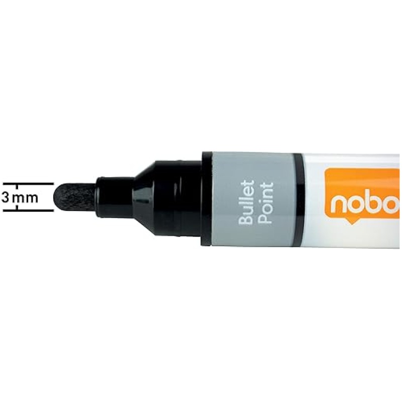 • The whiteboard pen has a 3 mm bullet tip excellent for consistent smooth lines, use with a Nobo whiteboard for optimum performance