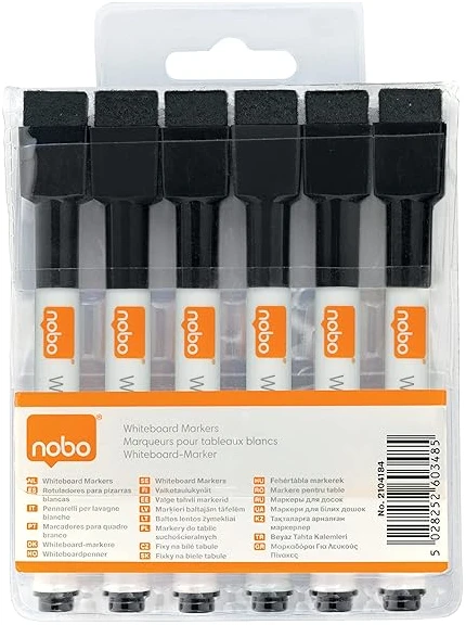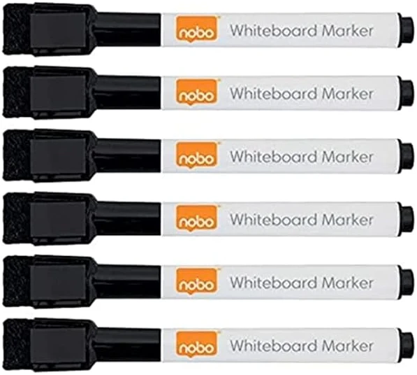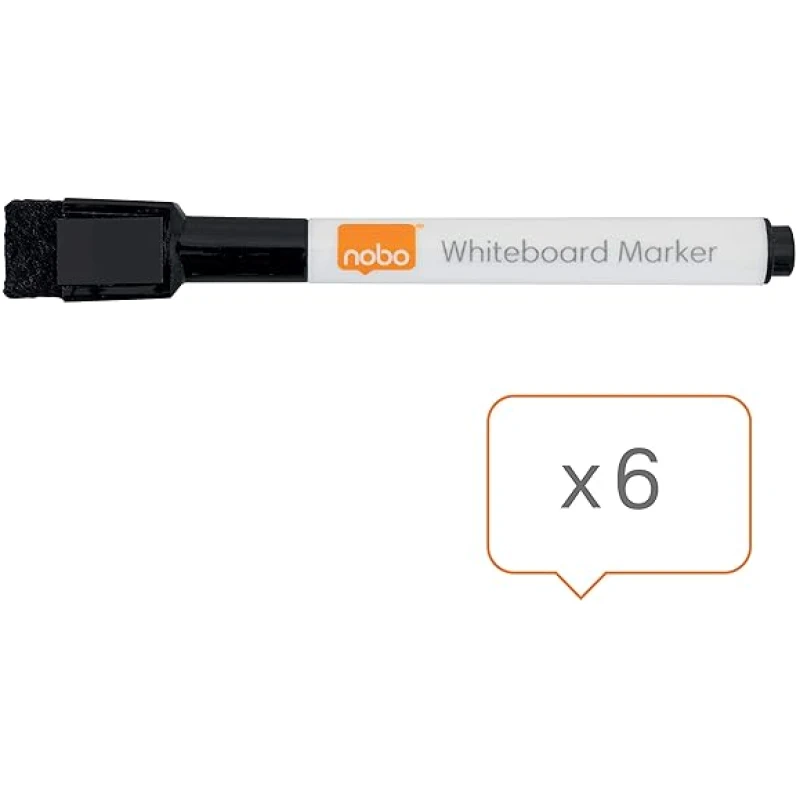 - Contents: 6 x Nobo Mini Whiteboard Pens With Magnetic Eraser Cap, Black, Weight: 0.01kg, 2104184