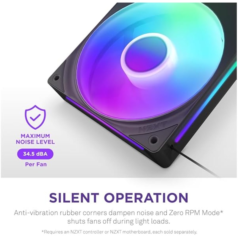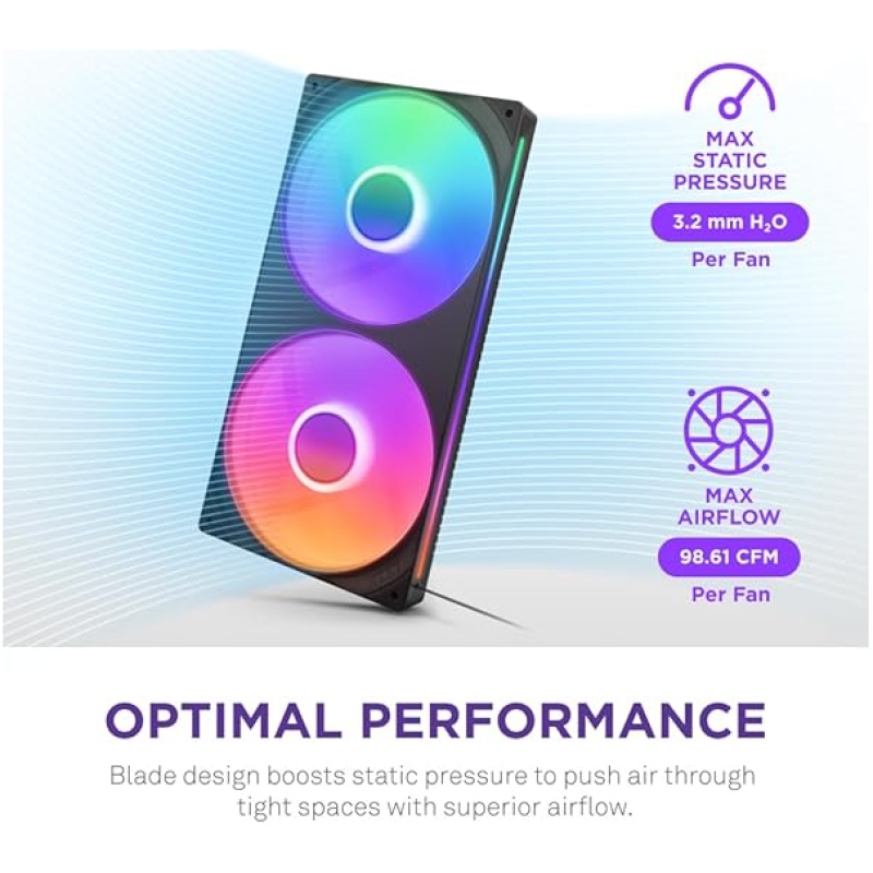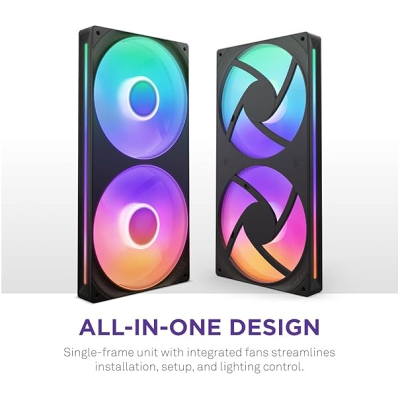 NZXT F280 RGB Core – 280mm Single-Frame Fan Unit with 2 x 140mm RGB Fans – Speed & Lighting Control – High Static Pressure & Airflow – Fluid Dynamic Bearings – 8 aRGB LEDs Per Fan – Black