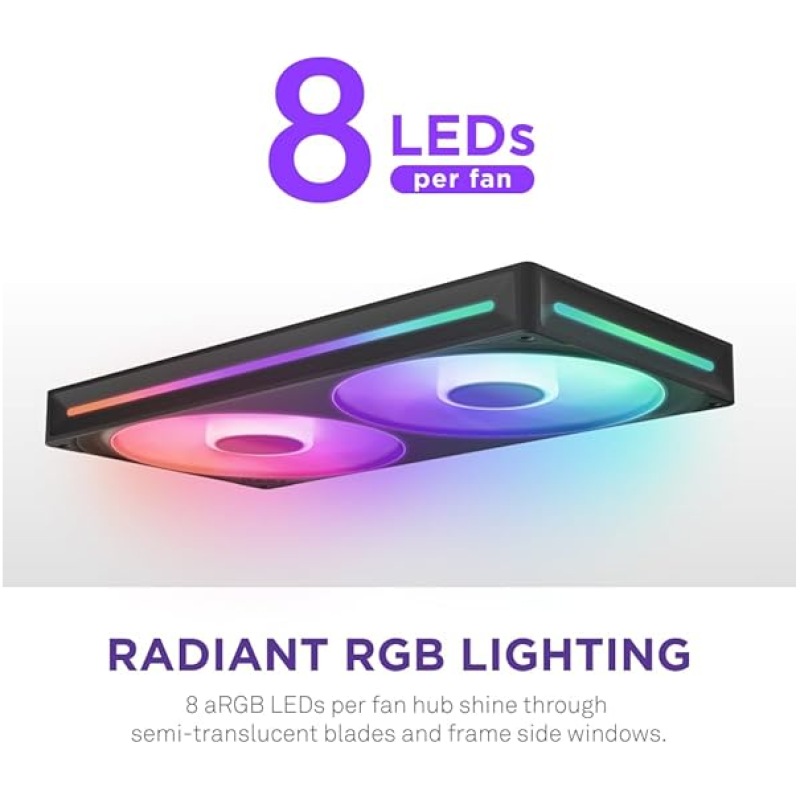- VIBRANT LIGHTING ? Eight individually addressable RGB LEDs per fan hub shine through semi-translucent blades for personalized lighting effects.