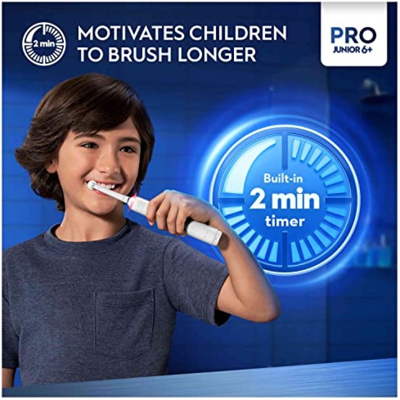- Pauses every 30 seconds to alert your child to change the area that’s being brushed
