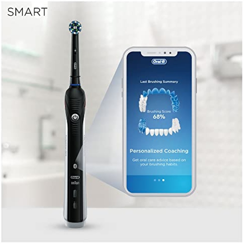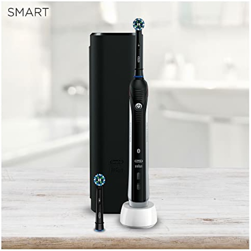 Oral-B Smart 4 Electric Toothbrushes For Adults, Mothers Day Gifts For Her / Him, App Connected Handle, 2 Toothbrush Heads & Travel Case, 3 Modes with Teeth Whitening, 2 Pin UK Plug, 4500, Black