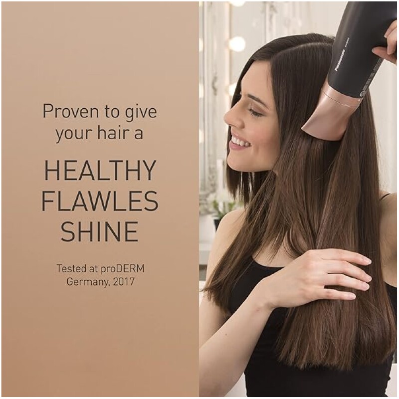 - Nanoe Technology: Panasonic’s innovative Nanoe tech is proven to give a healthy flawless shine (tested at proDERM, Germany, 2017). Retains the moisture balance in your hair to ensure smooth, shiny hair. Reduces damage and protects the hair cuticle