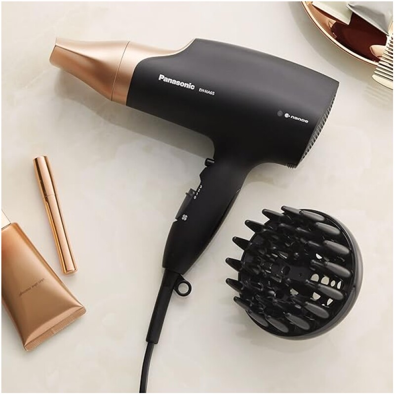 Panasonic EH-NA65CN895 Nanoe Hair Dryer with Diffuser, Quick Dry & Styling Nozzle – Visibly Improved Shine (Rose Gold), Gifts for women