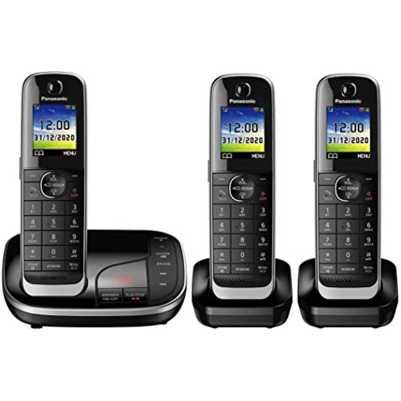 Panasonic KX-TGJ323EB Landline Phone Cordless, House phones, Nuisance Call Blocker, Answer machine, Colour Display, Triple Handset – Black