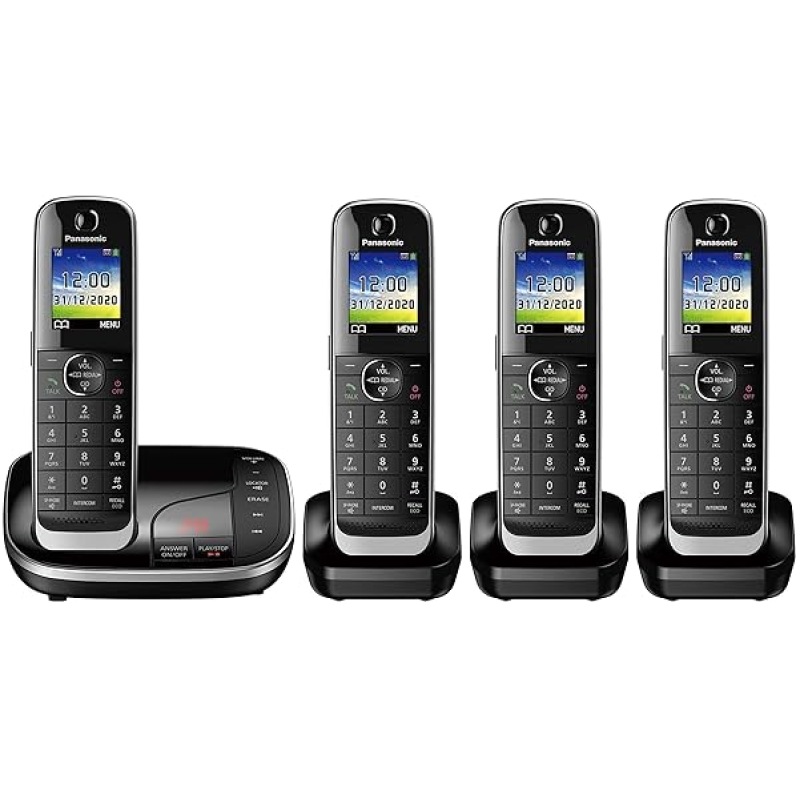 Panasonic KX-TGJ324EB Landline Phone Cordless, House phones, Nuisance Call Blocker, Answer machine, Colour Display, Quad Handset – Black
