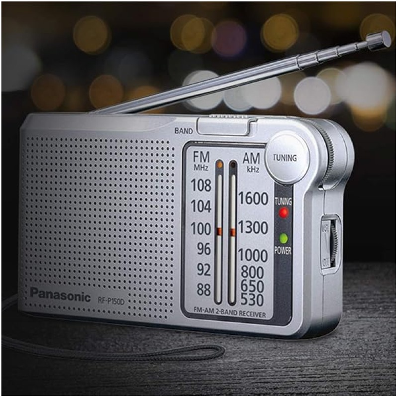 Panasonic RF-P150DEG-S Pocket FM/AM Radio with Digital Tuner, Auto Frequency Control, Large Dial Scale, Fluorescent Pointer, Battery Operated, Silver