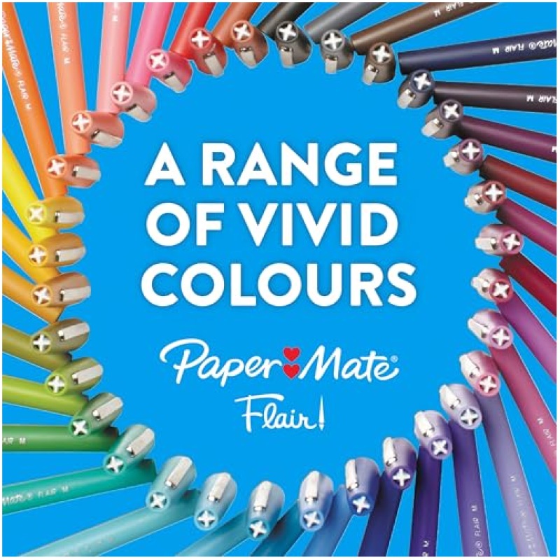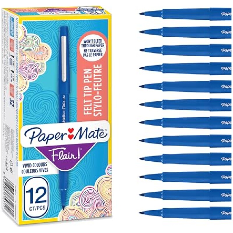 Paper Mate Flair Felt Tip Pens | Medium Point (0.7 mm) Writing Pens | Blue Pens | for Writing, Drawing & Sketching | 12 Count