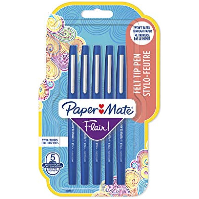 Paper Mate Flair Original Fibre-Tip Pen Blue – Pack of 5