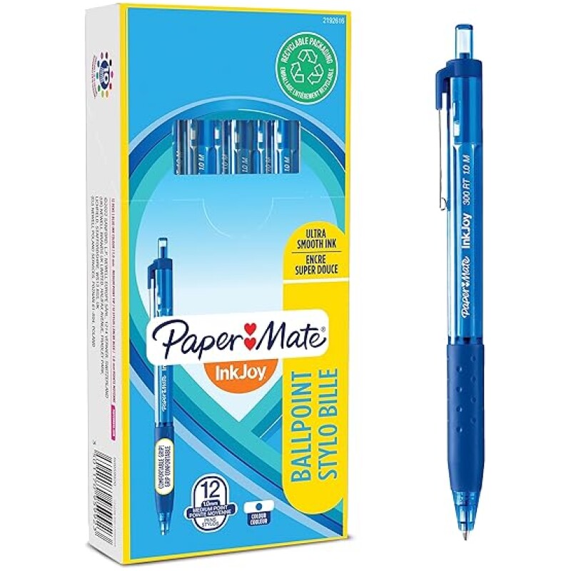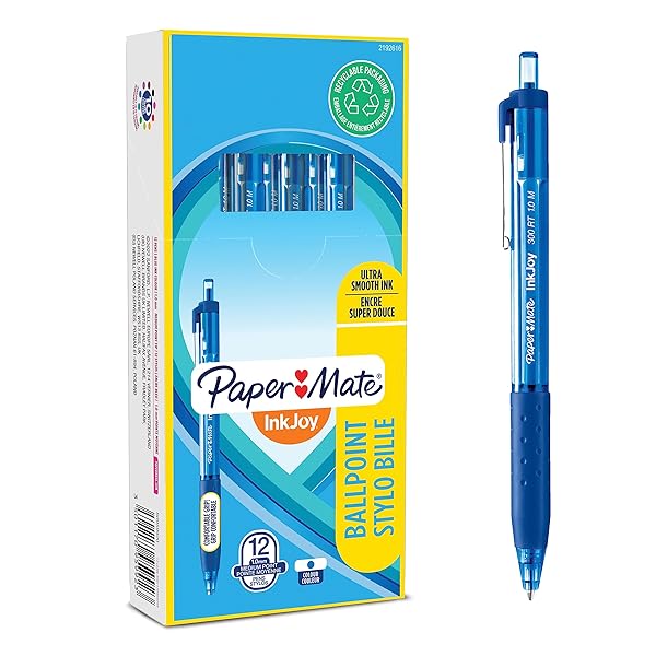 Paper Mate InkJoy 300RT Retractable Ballpoint Pens | Medium Point (1.0 mm) | Blue | 12 Count