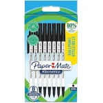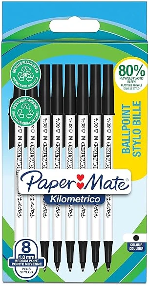 Paper Mate Kilometrico Ballpoint Pens | Long Writing with Medium Point (1.0mm) | Black Ink | 80% Recycled Plastic | 8 Count