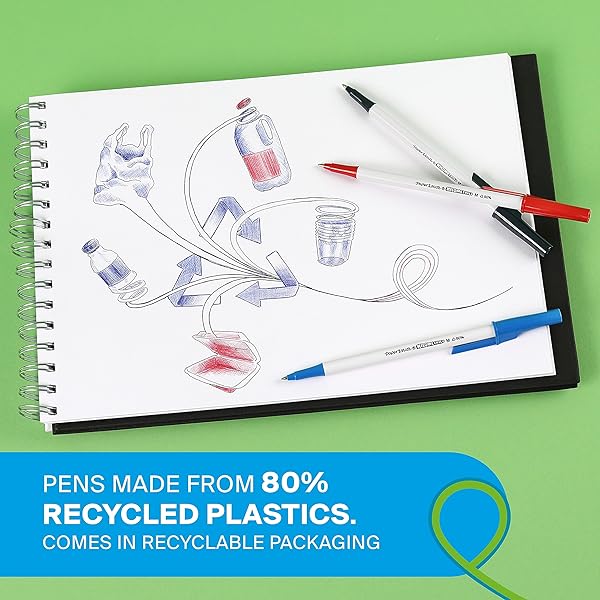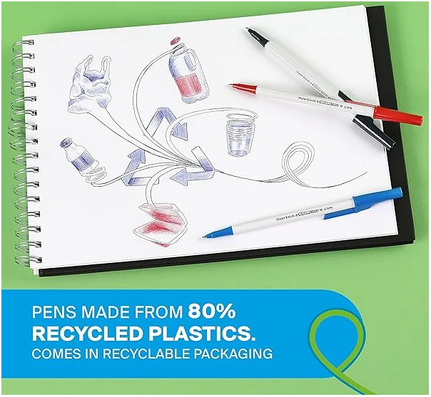 • Reliable writing you can trust, now made from 80% recycled plastics and presented in plastic-free recyclable packaging